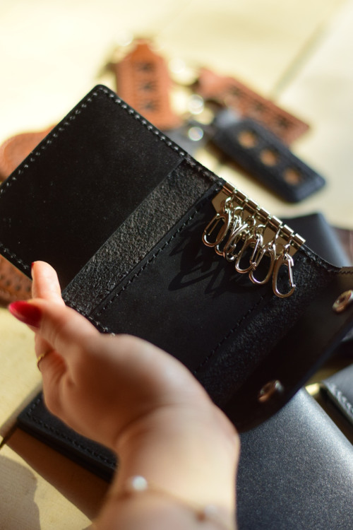 کاربردیترین محصول چرمی که ماندگارترینه. دارای ۶ جای کلید و ظرفیت ۳ کارت بانکی.