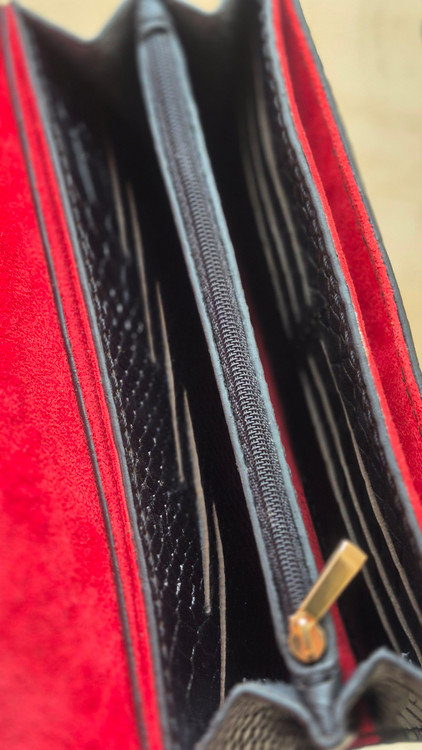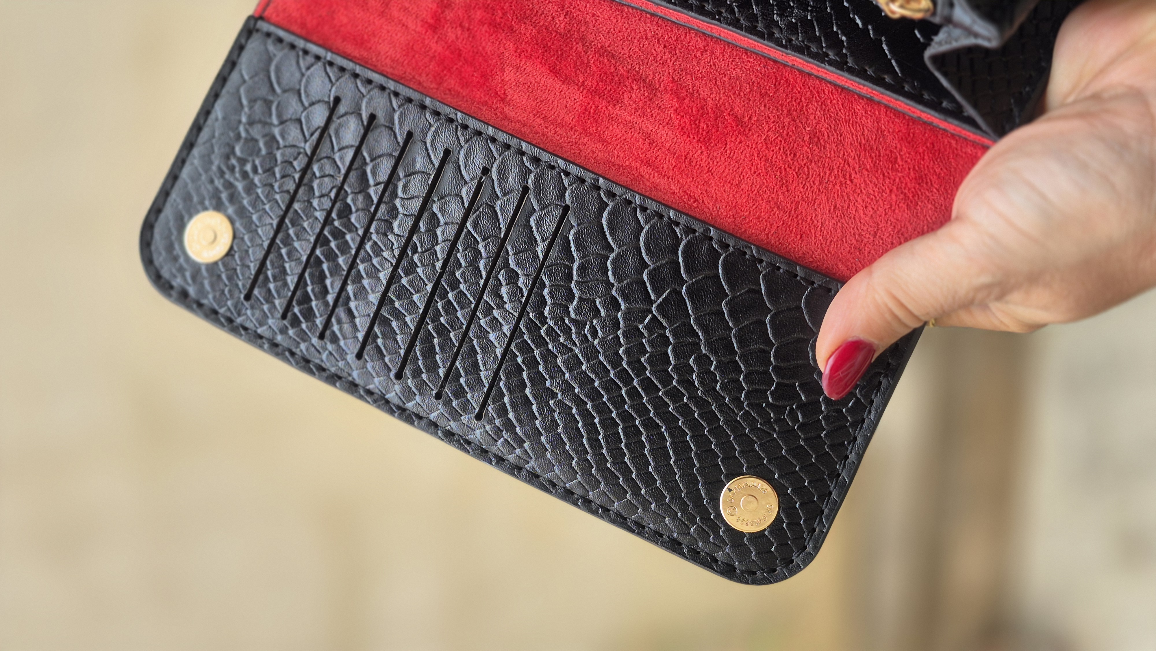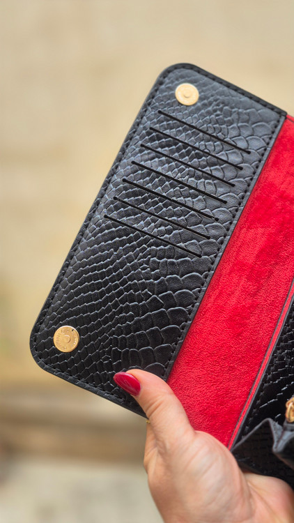 جادار و سبک، مناسب استفادهی روزانه دارای 18 جای کارت و 3قسمت جهت نگهداری اسکناس و گوشی